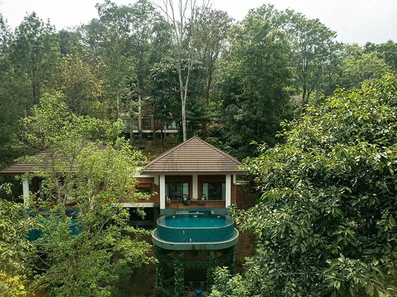 Timber Tales Coorg is a luxury eco-resort nestled in a 100-acre coffee plantation near Madikeri, Karnataka. Surrounded by lush forests and serene landscapes, the resort offers an immersive blend of comfort and nature. With 71 elegantly designed rooms and villas, guests enjoy modern amenities, private balconies, and stunning views. The resort is an ideal getaway for those seeking tranquility, romance, or a family vacation amidst the beauty of Coorg’s Western Ghats.
